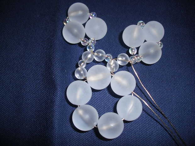Del hilo de rosca del extremo del alambre (base A) a través de la pequeña cantidad de muestra (de los dos granos pequeños al lado de uno al otro, uno más cerca hacia el centro del copo de nieve)