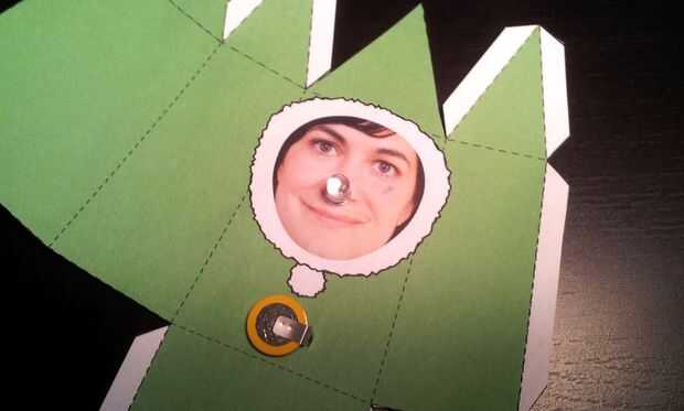 Decida donde desea el LED y la batería, meter los componentes a través del papel.