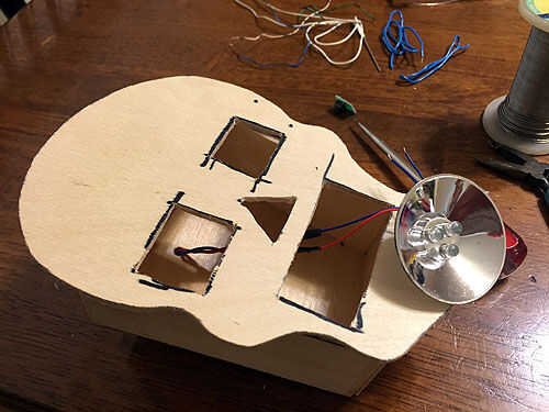 Un consejito: instalar la luz antes de pegar la abertura del cráneo y la caja de luz.