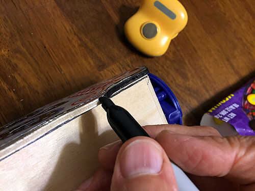 Pegamento caliente se seca tan rápido que no tienes tiempo para hacer ajustes, por lo que recomiendo usar pegamento adhesivo para colocar la cara de calavera de azúcar en el recorte de madera. Después de que el pegamento esté seco, tomar el sharpie negro y el borde de madera alrededor del cráneo para el contraste de color.