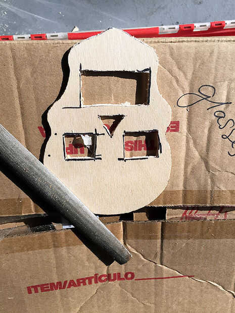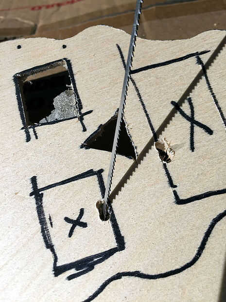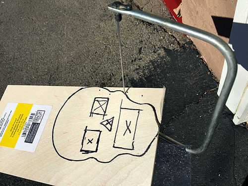 Cubrir los contornos con cinta de enmascarar o transparente de embalaje cinta para evitar astilladuras. Usando una sierra de marquetería o de vaivén, corte los contornos de los ojos, nariz y boca. Un taladro es muy útil para hacer los agujeros a partir de la hoja de Sierra de marquetería. Una vez realizados los cortes interiores, cortar la parte exterior. Utilice papel de lija o un archivo para suavizar todo tipo de cortes.