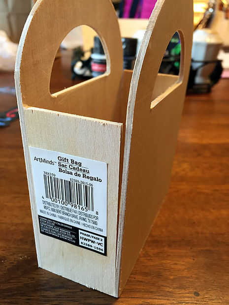 Quitar un lado de la bolsa de regalo de madera separando suavemente en el pegamento común.
