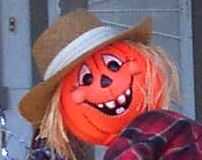 1. comprar una calabaza de cabeza pedir dulces cubo. Pintar sobre ojos negros y boca para crear ojos mejor un dientes. Cola de paja a la tapa de la cabeza. Pegue el sombrero en la cabeza después, ahora no.