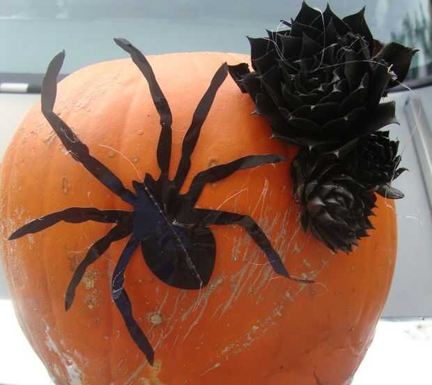 También hizo lo mismo con una calabaza grande pero una araña ha añadido en él.