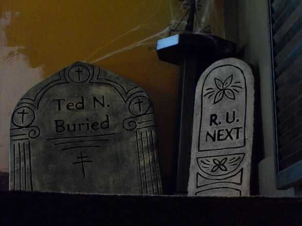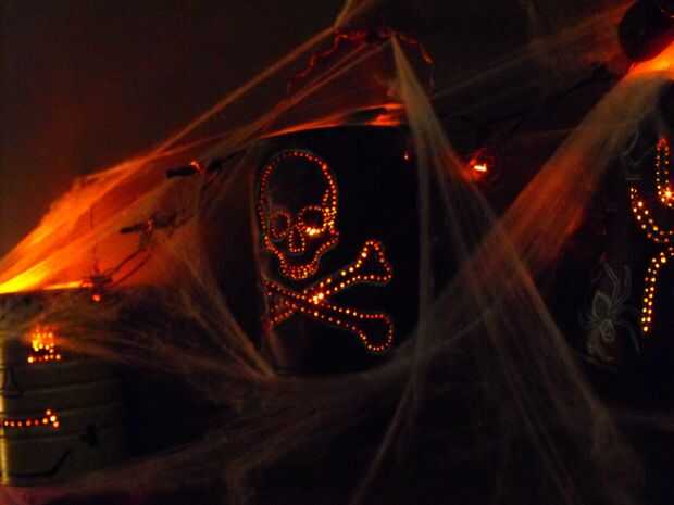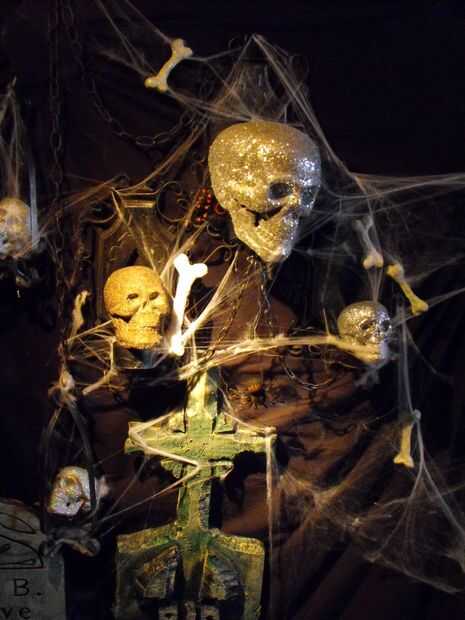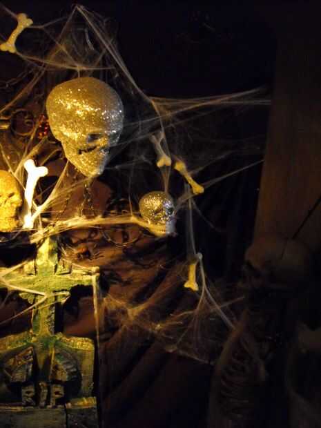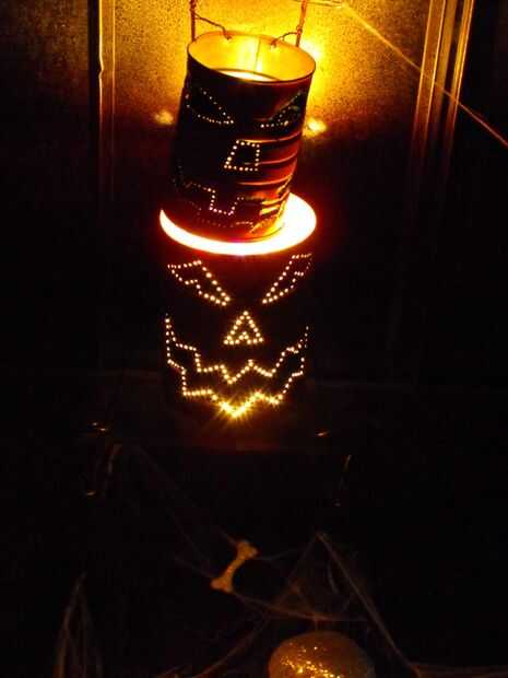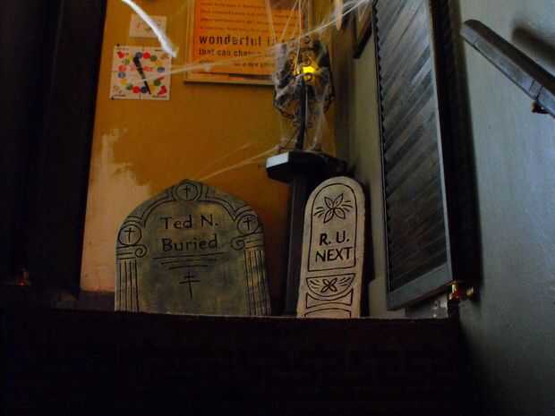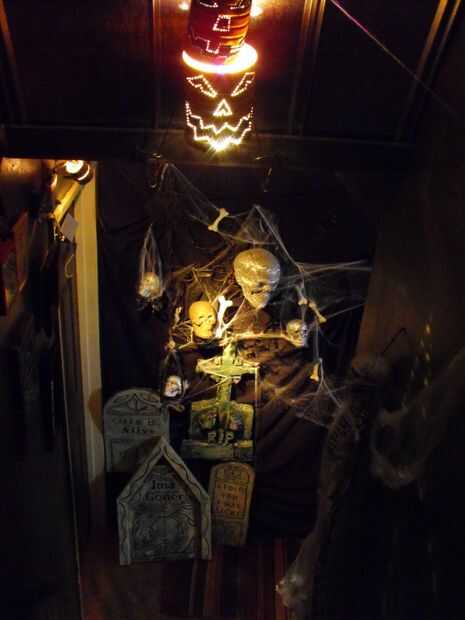 con alguna cinta, una escalera y algunas fuentes de Halloween comprados te pueden crear un astonoshing y decoración de halloween de miedo. Tomar ventaja de oscuros pasillos, pasadizos secretos, etc..Este proyecto se realizó en el puente que une a 2 o
