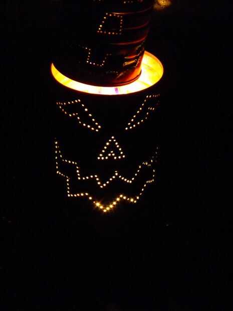 Vela de Halloween - esta lucecita funky toma sólo un par de minutos a la artesanía!Materiales:ACTÍVA Color Arena de decoración en naranja y negroSostenedor votivoLuz de la batería brillo verdeAdornos extras como arañas, árboles, bancos opcionalesPaso