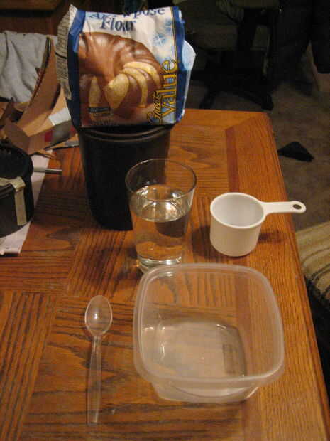 * Igual partes de agua y harina (alrededor de una taza de las dos es buena para una piedra),