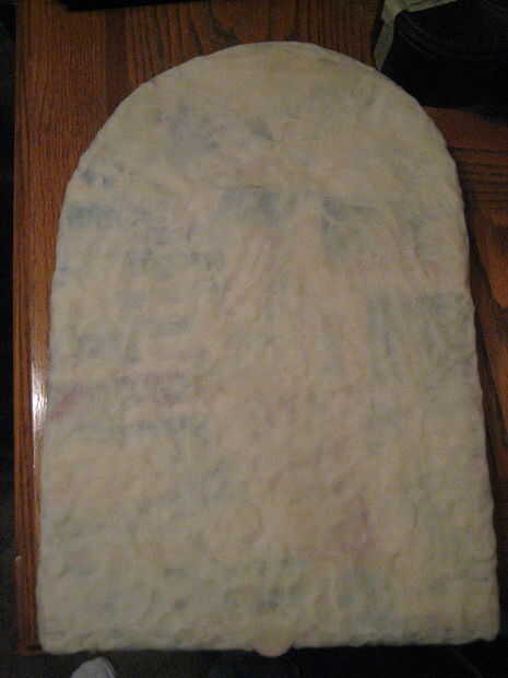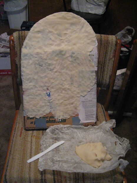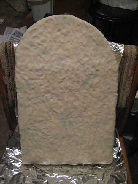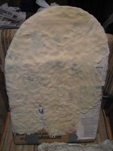 Para hacer la parte de atrás de la piedra, sólo tapa la caja alrededor, pero ten cuidado. Todo el peso de la masa ya está en la piedra, para no dejarlo caer! Continuar la cubierta de arriba abajo y tratar de hacer invisible la costura donde se unen los lados. Cuando la piedra está totalmente cubierta, sentarse y ver su lápida pronto acabado seco. Mi mina deja sentarse durante alrededor de 10 horas y la vuelta alrededor. Si la piedra está tocando algo, lo más probable es la masa no seco, pues no olvide darle la vuelta cuando esté seca la parte delantera y que la espalda se siente y seco.