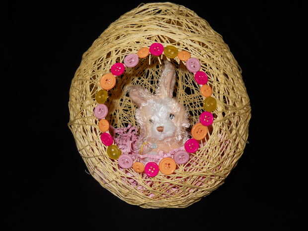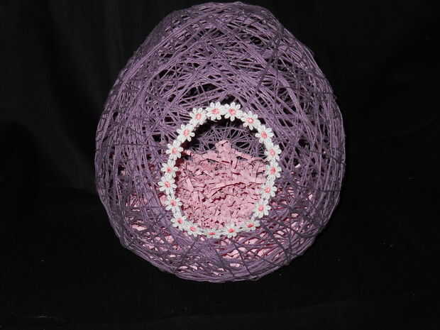 Ayudarse con unas tijeras y corte una abertura de tamaño deseado. (Yo usé las tijeras de seguridad para niños. Muy fácil de cortar pero se suave.) Agregue hierba Pascua interior, encadenar o botones alrededor de los bordes ásperos de la abertura y un juguete (o cualquier decoración) en la parte superior o interior del huevo.