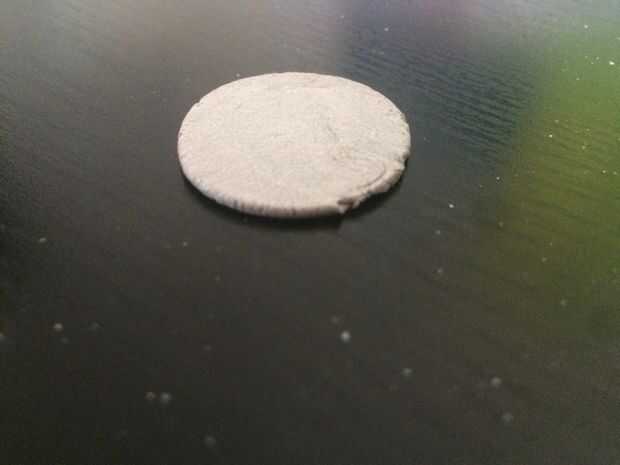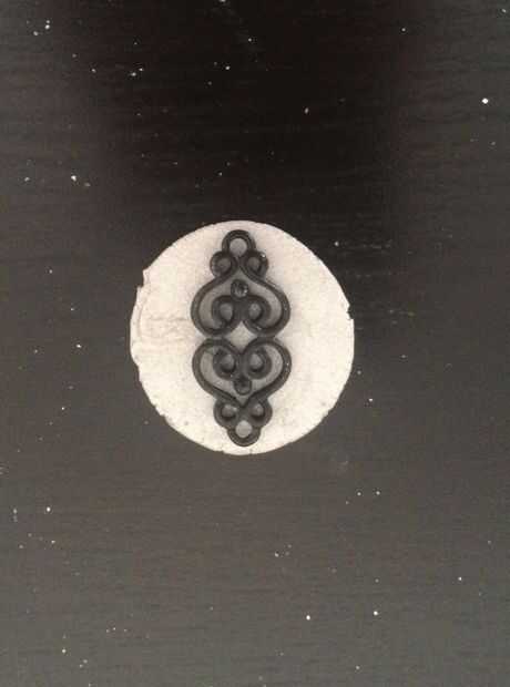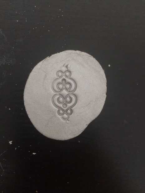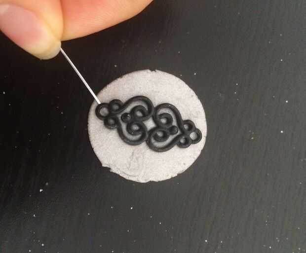 Tomar un trozo de arcilla y aplanar hacia fuera sobre la superficie. Entonces tome su grano y oprima sobre la arcilla. Tomar con una aguja.