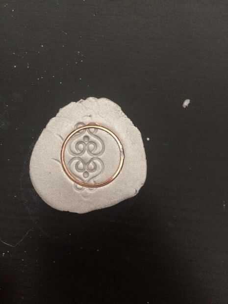 Presione el anillo en la arcilla (Coloque ligeramente a la izquierda).