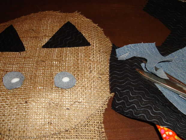 Hablar sobre las diferentes formas que pueden utilizar para hacer que los ojos. Pida a los estudiantes dibujar sus formas en la tela con una tiza. Como el material no mancha, lápices de colores se mostrarán. Puede cortar y pegar. Les digo una vez más, que este es un momento donde pueden usar pegamento más de lo normal debido a la tela absorber y necesita adherirse.