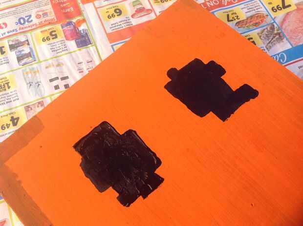 Pintar líneas con la mezcla de naranja marrón y pintar la cara con negro