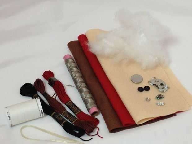 Fieltro a tela - cuadrado 17cm para cada frente y vuelta en color, 11 cm x 22 cm para los cuernos y la nariz y cuadrado de 11cm de hocico (medidas aproximadas).