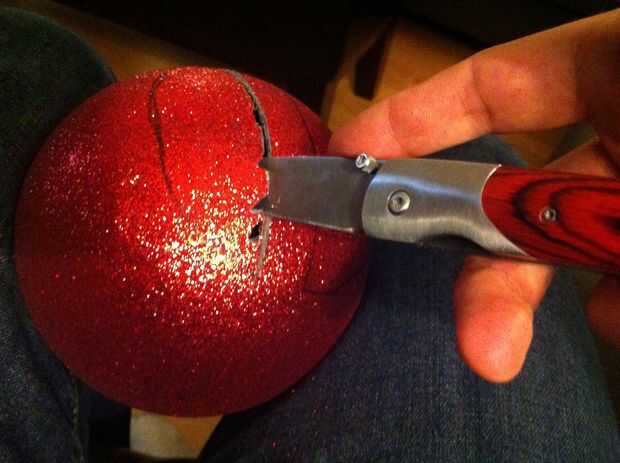 Yo no recomendaría usar una bola de la Navidad como que tengo una bola de espuma hubiera sido mucho más fácil trabajar con.