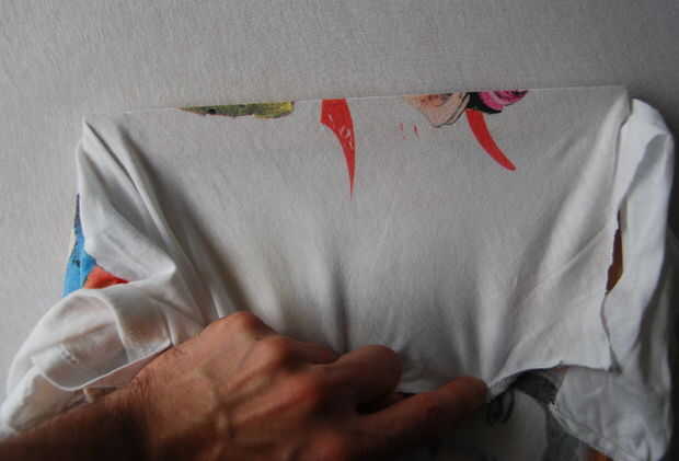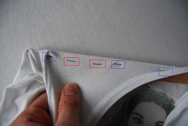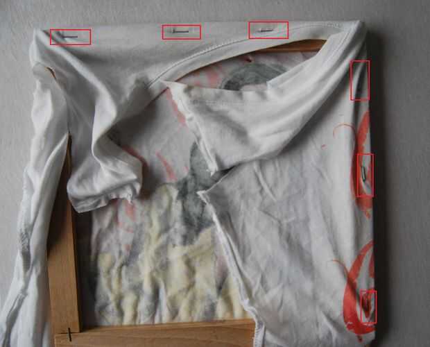 Lado superior: Tire un poco la camiseta para la parte superior y ajustado a la derecha. En la parte posterior del bastidor puede sujetar la camiseta con 3 grapas.