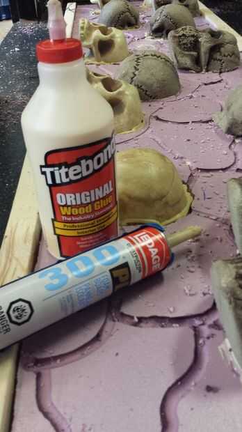 Ahora usa el mismo adhesivo para pegar los cráneos en las áreas que tallado hacia fuera para ellos. También utilizamos un pegamento adicional para que sea muy resistente.
