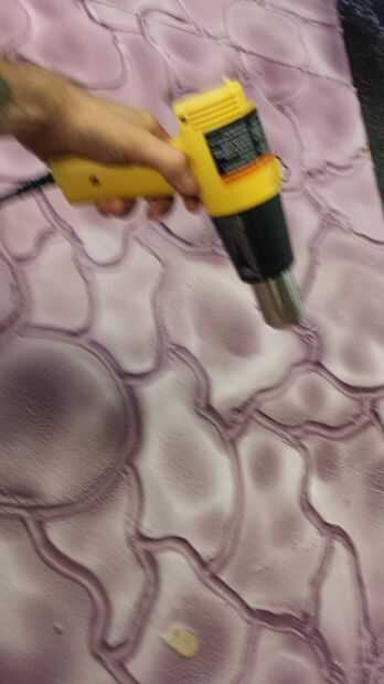 Usando una pistola de calor, disponibles en la mayoría de las ferreterías, sostenga la pistola cerca de 1.5-2 pulgadas de su panel de espuma y empiezan a angustia las piedras.