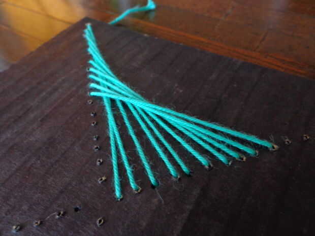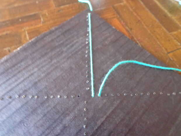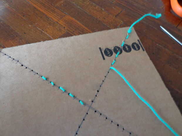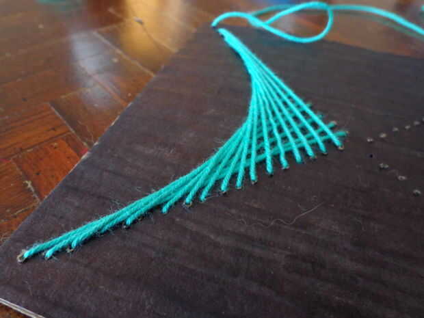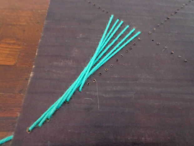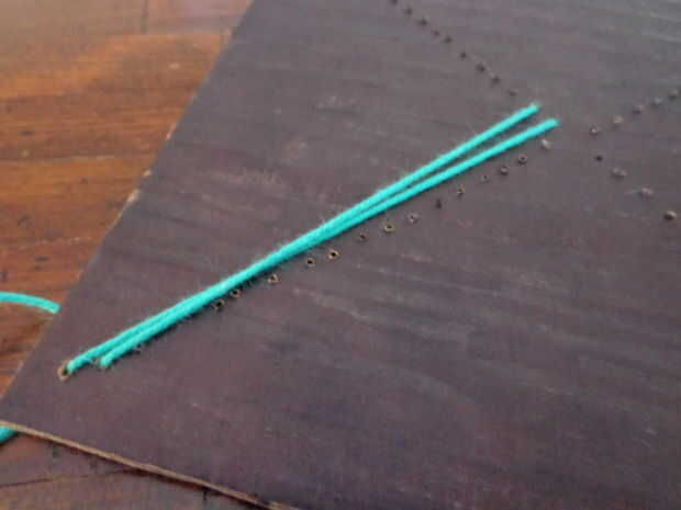 Repita este proceso hasta abajo. Cada agujero se conectará con cadena para el orificio opuesto en el lado siguiente.