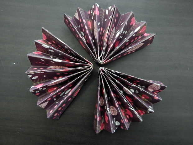 4. Repita el mismo proceso y 2 ventiladores más en la misma cartulina estampada.