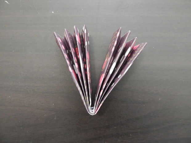 3. doblar la tira de acordeón por la mitad y pegamento caliente los dos lados juntos.