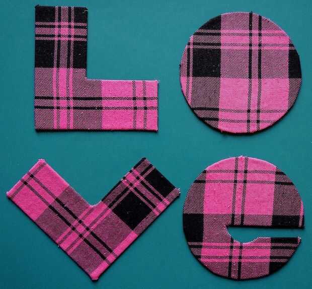 Estas letras están hechas de cartón delgado cubierto con tela.