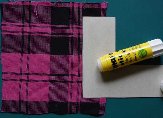Coloqué cada carta boca abajo en la tela y descubrí que la mejor manera de arreglar y cortar la tela alrededor de la letra era primer uso algún pegamento de la barra a la derecha de la letra y luego poner boca abajo el cartón a la tela (pegamento líquido funcionaría a través de él y pegamento caliente que deja abultamientos por eso usé el palillo del pegamento).