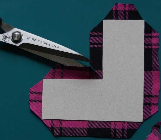 Para las esquinas de las letras L y V, corte las esquinas de la tela, para que sea fácil de plegar a la parte trasera.