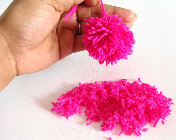 Empezar a recortar y seguir girando como una bola de cabos sueltos y cortarlas. Recortarlo para que aparezcan como un pom pom.