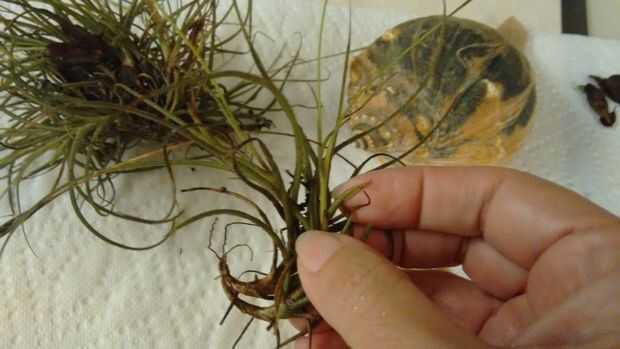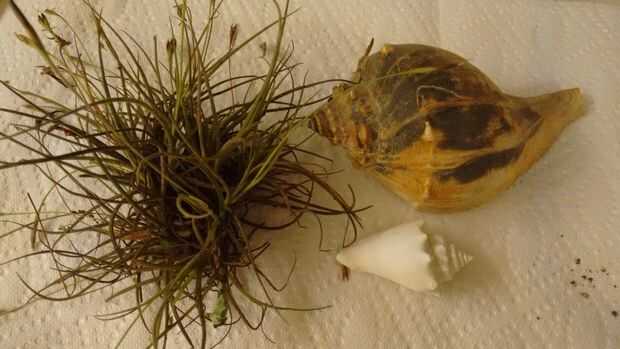 Verás que hay dos granadas y una planta de aire aquí. ¡No hay problema! Como orquídeas, plantas de aire se puede separar en las plantas individuales. Tan suavemente quitar cualquier tamaño pieza te gustaría y enjuague otra vez si es necesario (probablemente encontrará más hojarasca cuando se separa de la planta).