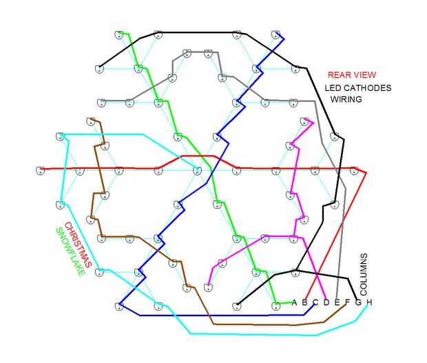 Después de realizar la última conexión en una fila o columna, deje suficiente cable libre para la conexión a la placa que está diseñado para caber en el espacio en el centro led.