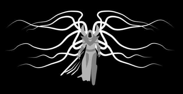 Más o menos me puse las 3 capas diferentes. La capa blanca debe ser las alas y la espada encendida, todo lo que es blanco puro y de luz. Las manos de túnicas y alas más pequeñas deben ser el siguiente color más ligero. La armadura debe ser más oscura todavía y todo lo demás debe dejarse como negro (o tan oscuro como sea posible con 4 capas de papel)