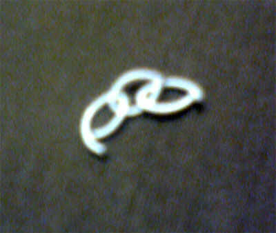 Conectar las etiquetas de anillo a una cadena cuidando que los extremos se solapan para que la cadena sea más fuerte (cuadros 2 y 3).