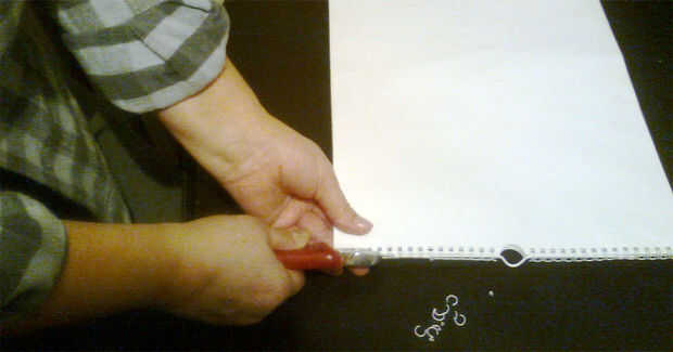 Cortar la espiral del calendario antiguo para obtener etiquetas de anillo (Figura 1).