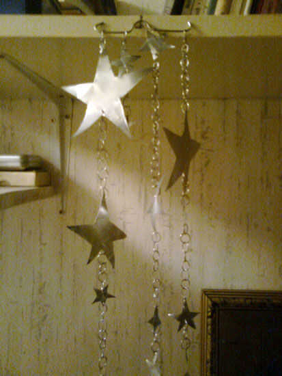 Si se curva el alambre del calendario en los extremos (Fig. 3) y colgar estrellas cadenas en puede conseguir una decoración de pared o repisa (cuadros 4 y 5). Aquí usted tiene que prestar atención al hacer un balance en el cable y fijarlo con algún pegamento para que las cadenas no deslice hacia abajo.