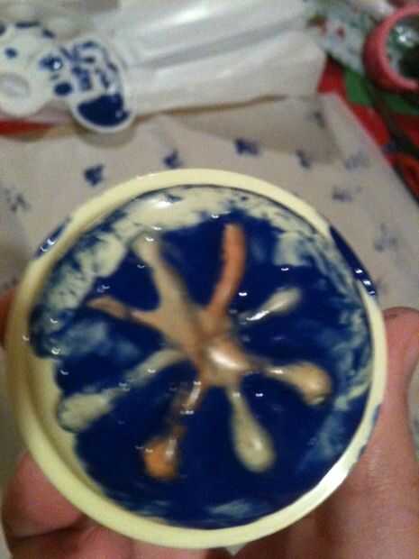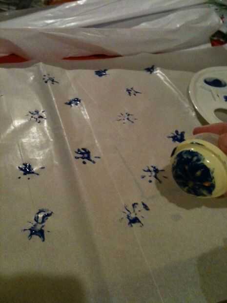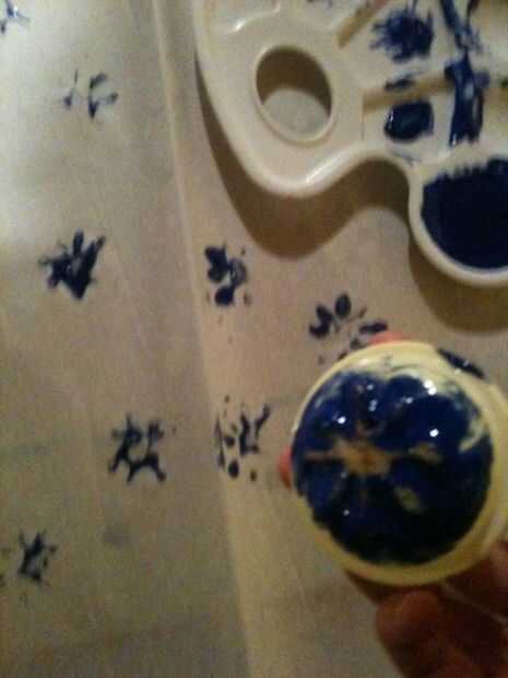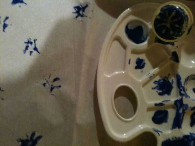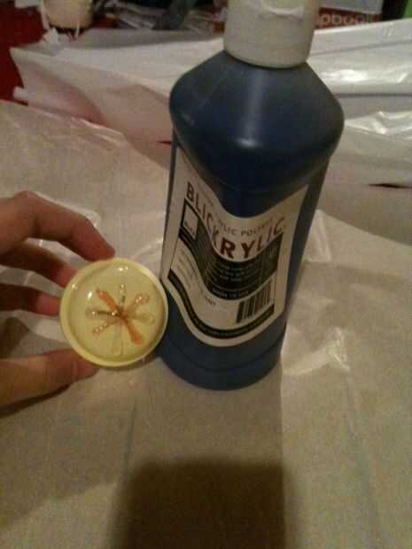 First, squirt out some paint. Usé pintura acrílica. Empuje el sello en la pintura ligeramente, por lo que se pone una pequeña capa de pintura sobre ella. Presione sobre el papel de tejido, o lo que puede ser sellado en y mantenga presionado durante un segundo antes de levantar. Sello de un par de veces más antes de redipping en la pintura. Seguir esparciendo los copos de nieve sobre, o cualquier patrón le puede ser sellado. Después de haya terminado, coloque el papel a un lado para secar.