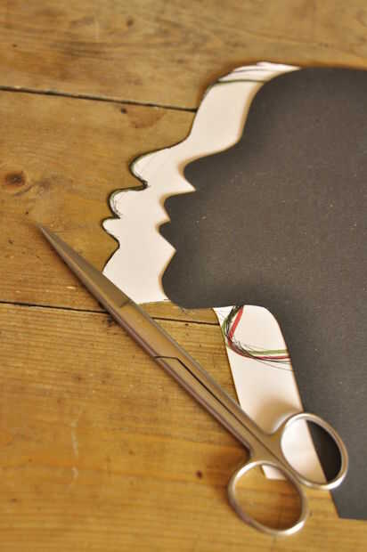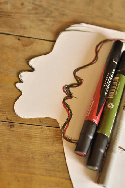 Dibuje su propia silueta o descargar la plantilla (es una dimensión de hoja A4 pero usted puede escalar como necesites). Hacer el signo claro de la silueta sobre el papel negro (es mejor firmar en el reverso de la hoja) y corte