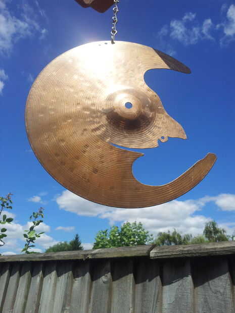 ¿Tienes un viejo platillo dañado? ¿sido demasiado tambores? Hacer una decoración del jardín con una sierra mecánica para metales, Lima de metal y un taladro.