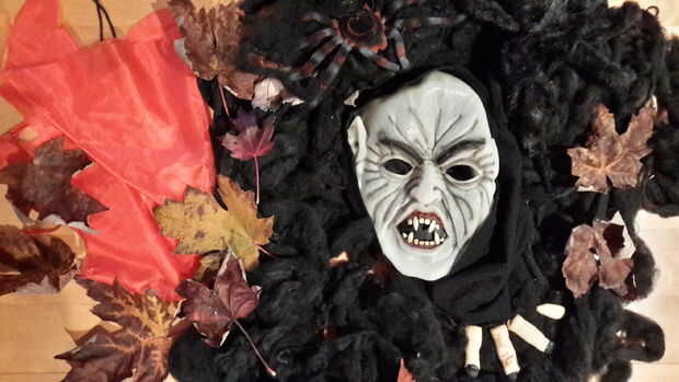 Artículo usado;maniquí cabeza - pueden encontrar en el local de Sally o pedir en líneacara máscara-puede encontrarse en tejidos de Joanne, porciones grandes y otros grandes reltail tiendasCráneo de plástico-WalmartCalabazas rellenas y Frankenstein-er