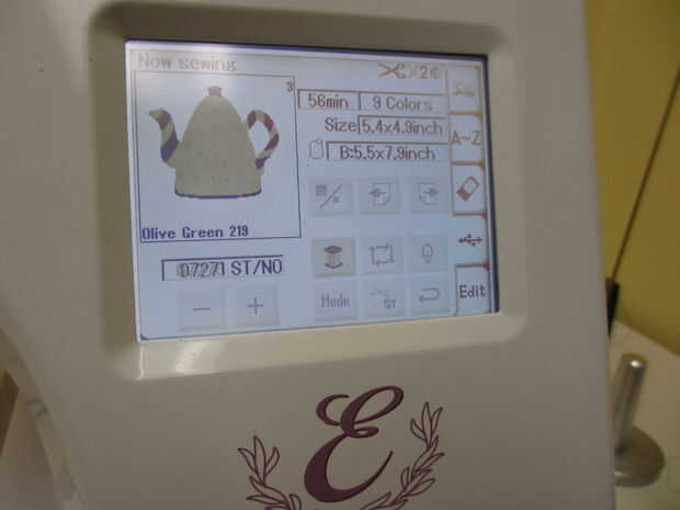 Poner la unidad en la máquina, encontré el patrón y eligieron los colores de hilo. Elegí de las que la tienda de tecnología tiene en la mano y de mi.