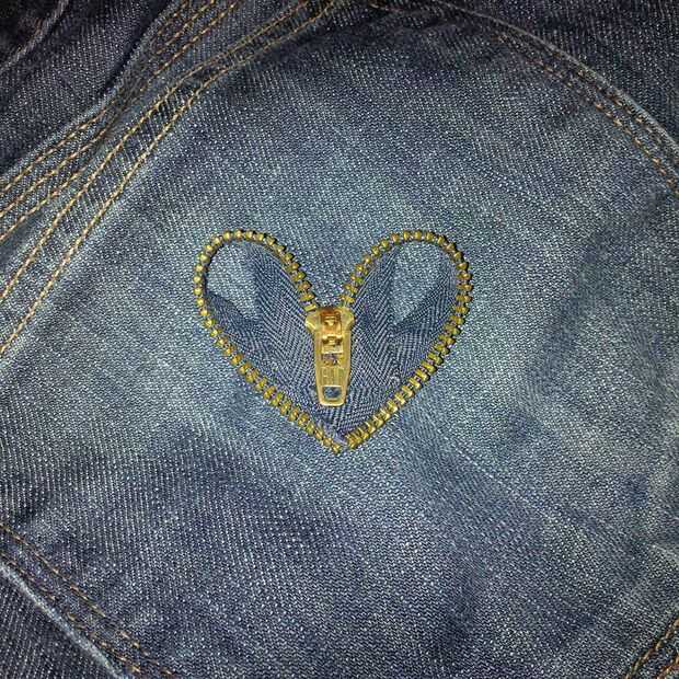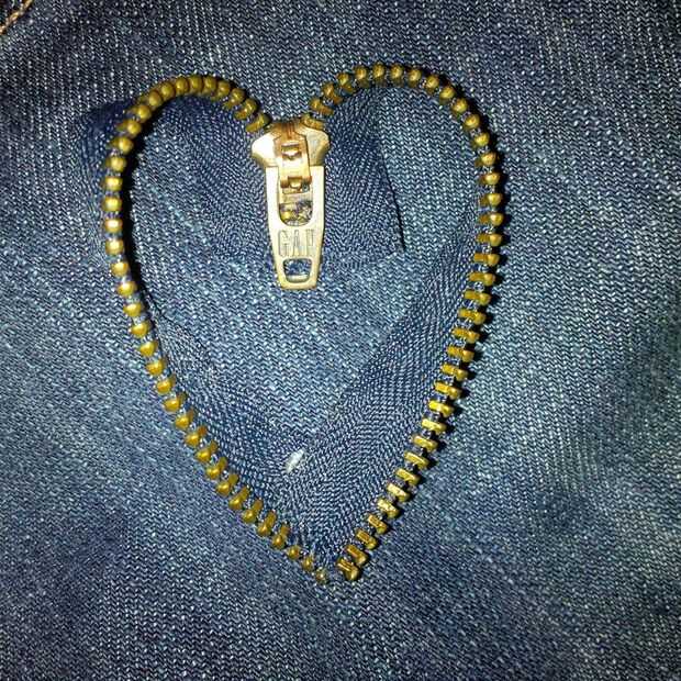 Llevar los extremos de los dientes de la cremallera hacia abajo y por debajo de la cremallera. Pegamento o coser un extremo de la cremallera en el otro extremo de la cremallera. Esto hará que una forma de corazón. Puede dejar que el corazón si quieres, o puedes pegar la cremallera en la parte inferior de la cremallera y hacer un corazón más pequeño.