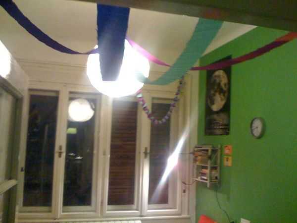 Inspirado en esta instalación de arte y de la película Frozen, creé esta decoración del techo para la temporada navideña. Todo esto tomó 2-3 horas para crear, por lo que es afortunadamente rápido además de ser barato y hermoso.También es mucho más se