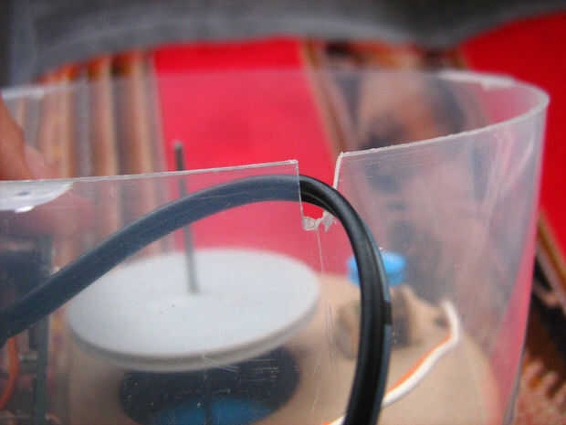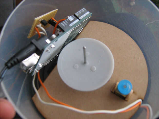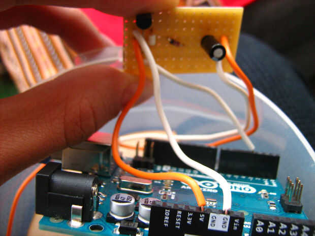 Finalmente, conecte el adaptador a la Arduino Uno y abrir un agujero en la caja del CD del huso para dejar el cable del adaptador cuando el caso está cerrado.
