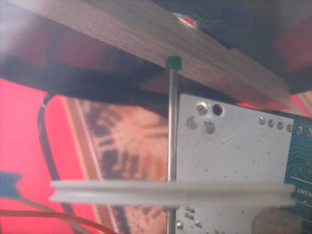 Poner la goma a la polea del motor con la polea de diámetro de 5cm y cerrar la caja del eje del CD correctamente, asegurando que: