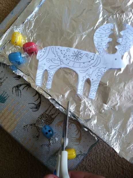 Doblar la hoja por la mitad tres veces y luego use la plantilla de papel de su Reno para cortar la hoja, asegúrese de que su mismo tamaño!!