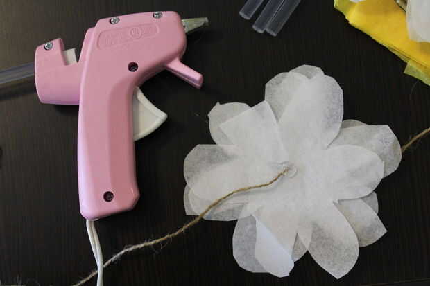 Paso 4: Pegamento flores en cadena de cáñamo