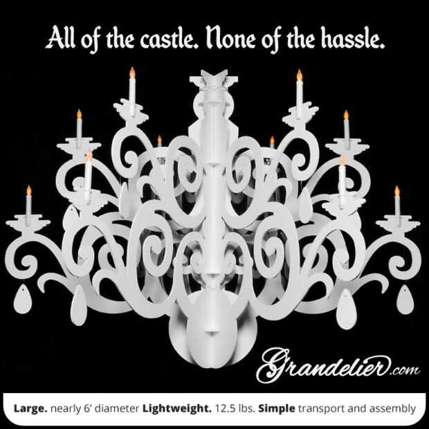 He desarrollado una versión actualizada y mejorada que está fabricada con lámina de plástico de PVC e incluye pilas LED velas. Yo he llamado el Grandelier. Ahora también está disponible en dos tamaños.
