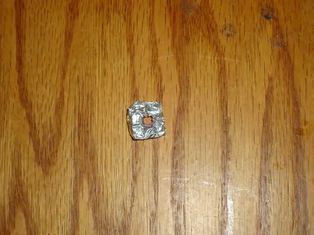 Tomar el cubo de espuma y envuelva en cinta de metal. Luego haga un pequeño agujero por el medio de la cubo para que los cables pueden exprimir a través de. Encolar y pegar los cables a través del orificio.