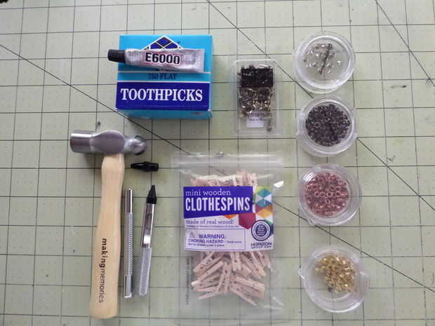 8) algo pequeño para sujetar las piezas encoladas a. Puesto que este cuadro era tan pequeño, utiliza el mini pins encontradas la sección de álbum de recortes de ropa. Generalmente se utilizan para la decoración, pero bueno, que trabajaron para esto. (Gracias por el dato, Christy) Clips de papel también funciona, pero no tengo lo suficiente de ellos. Tengo pinzas para la ropa porque son útiles, no porque son decorativas.