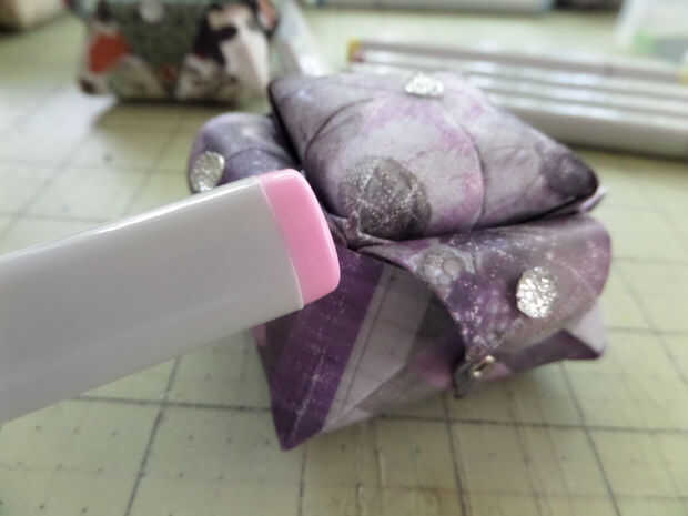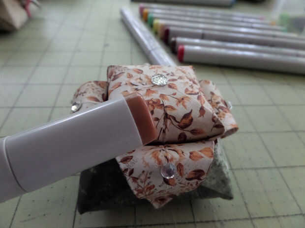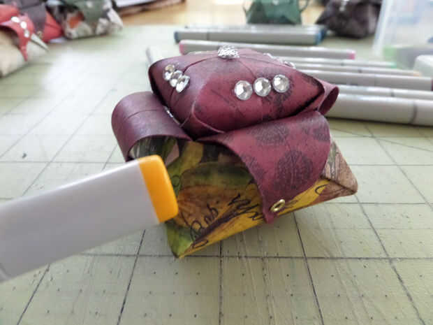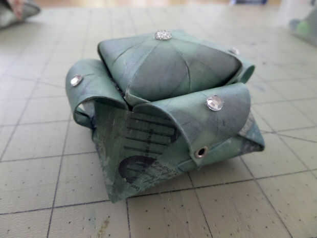 Imagen 1 muestra las aletas acabadas con todos los ojales en el lugar y a sólo 4 otras joyas para decoración. Recuerde, esto es una pequeña caja y no requiere demasiada decoración con el papel estampado. No creo que sí, pero entonces otra vez, hice 9 y no quería ir todos locos con pequeños cachitos más incómodas.